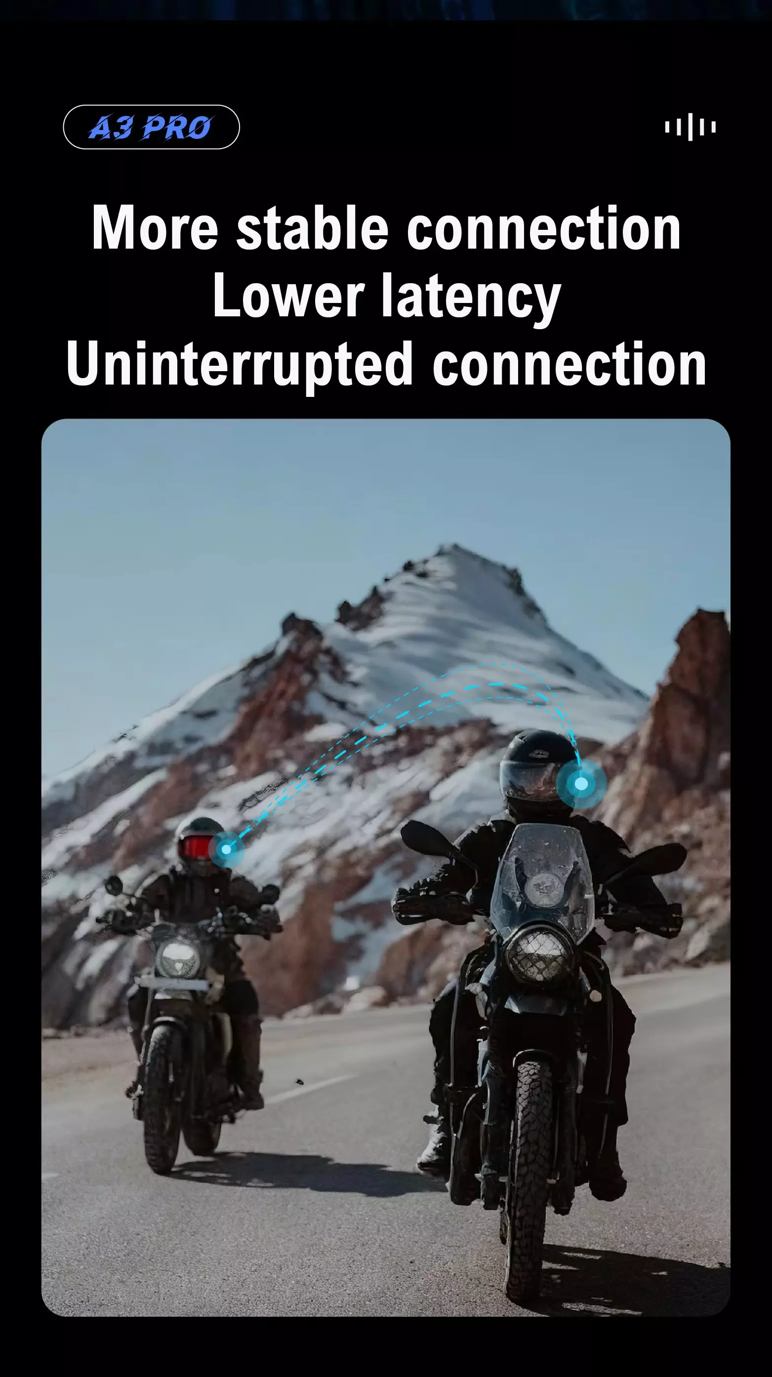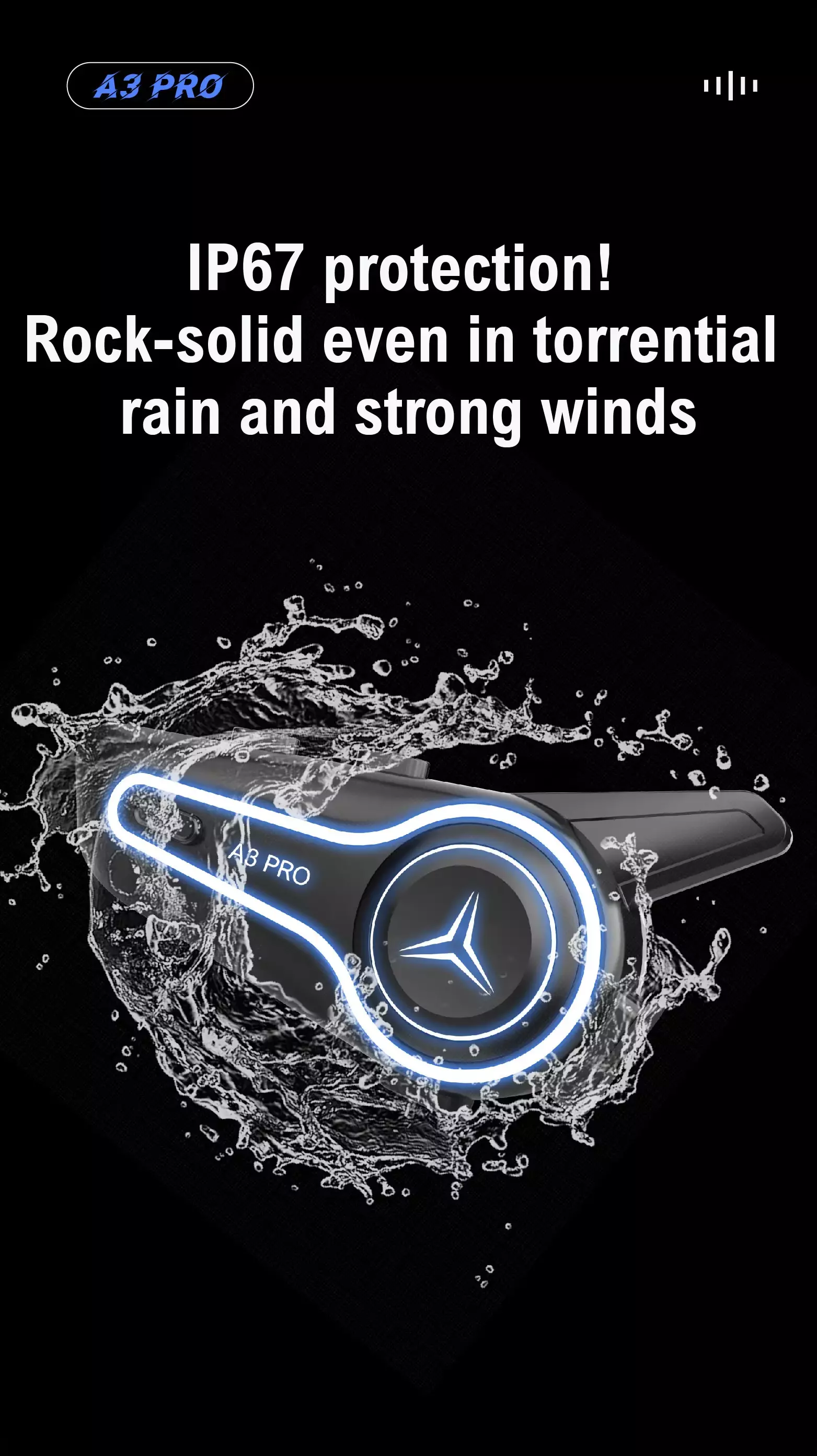 Bluetooth 5.3 ensures stable connection, IP67 waterproof shrugs off rain. Oversized buttons for gloved hands, voice assistant, and mixed audio sharing turn every ride into a shared adventure. Ride focused, ride together.