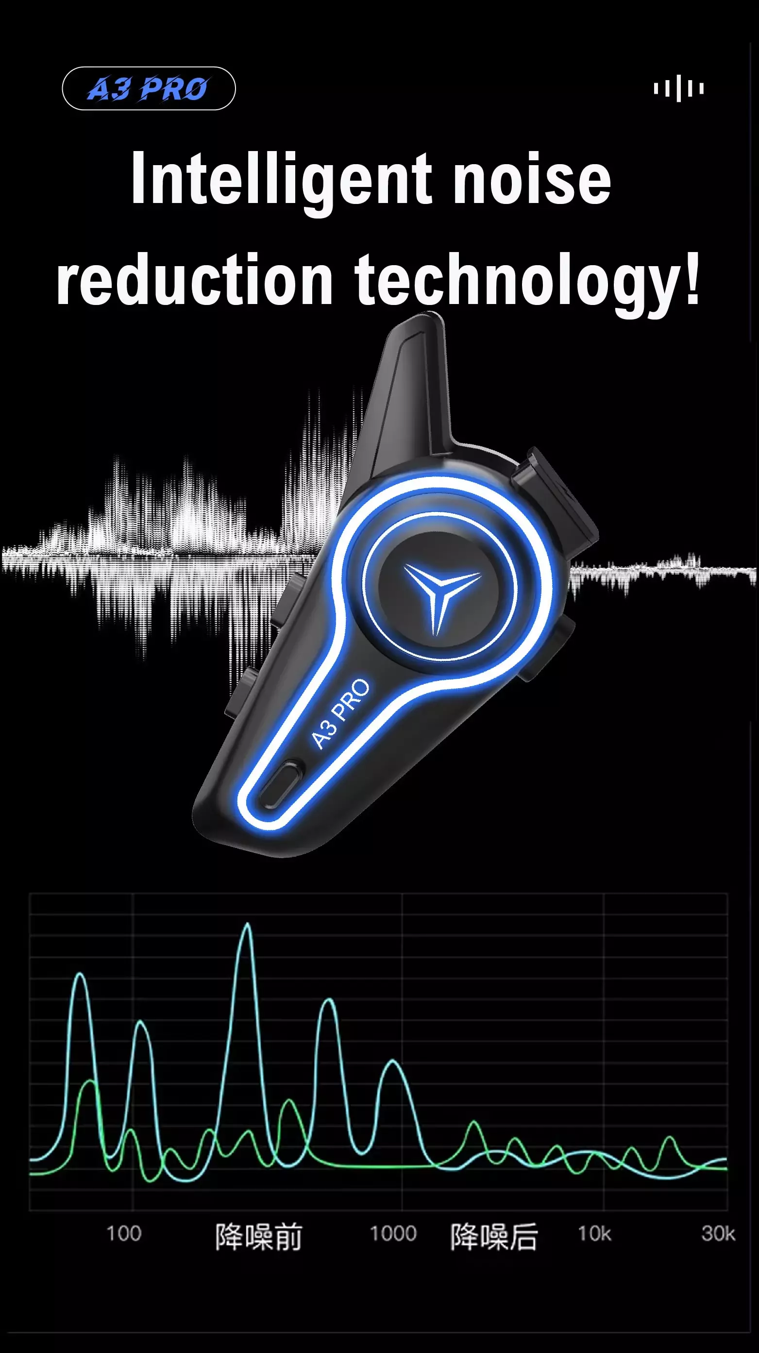A3 PRO for 5.3 Cycling Intercom Headset with Noise Cancelling One-Touch Mute 1000m Range IP67 Waterproof for Group Riding