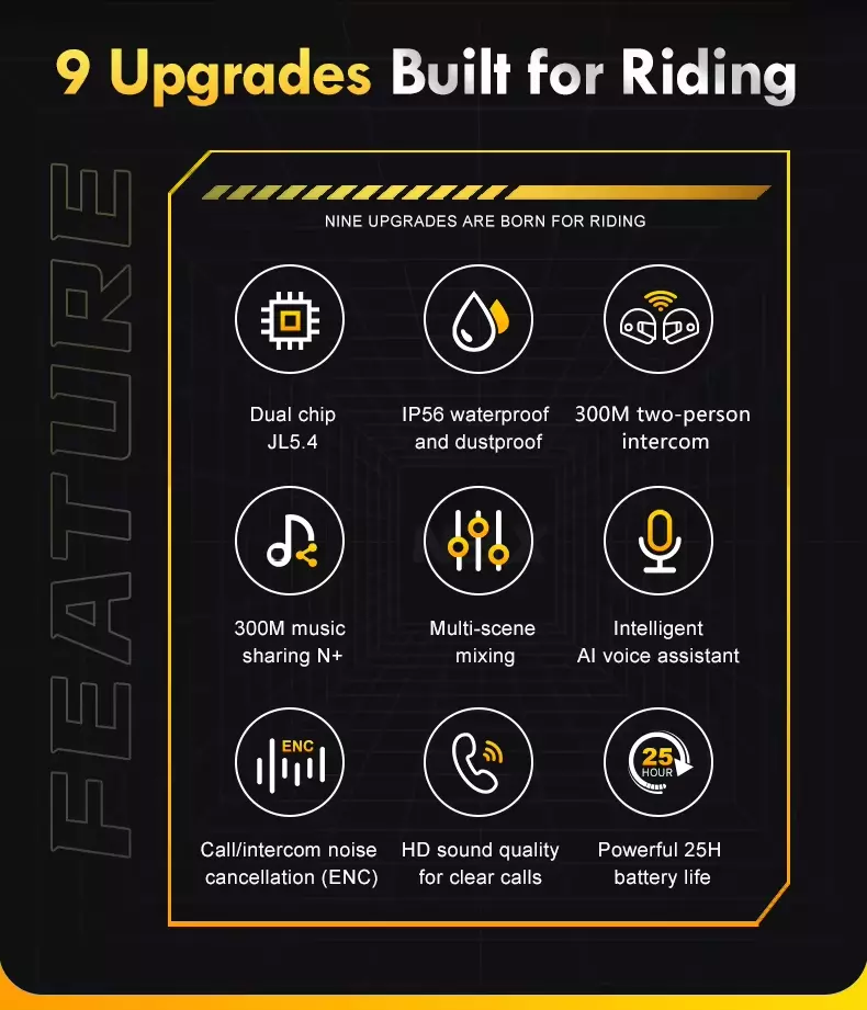 Оптимизирани за колоездене по магистрала, динамичните интелигентни алгоритми за намаляване на шума ефективно се борят с шума от вятъра, осигурявайки ясни разговори и стабилни връзки при високи скорости.