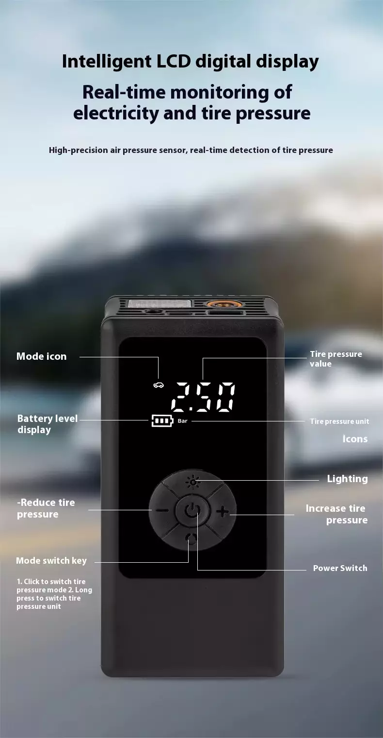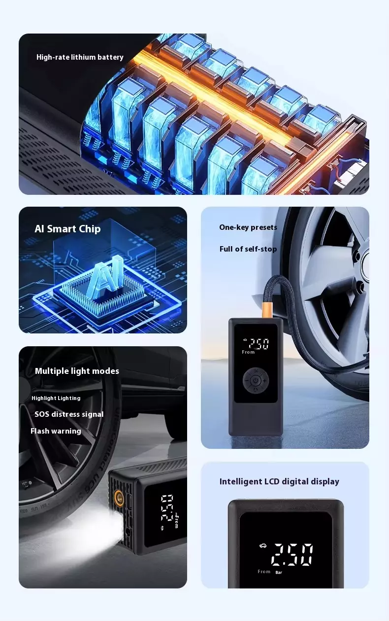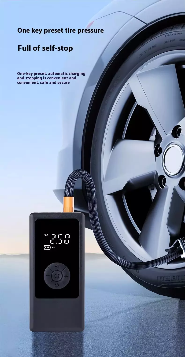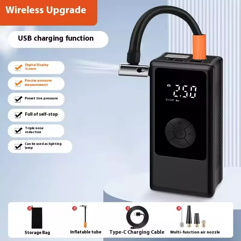 Roimhe Seo: Cineál Gunna Inflator Boise Gluaisteán Leictreach Mini le Auto Cliste Inflate Stop Muirearú USB do Rothar Gluaisteán Mini