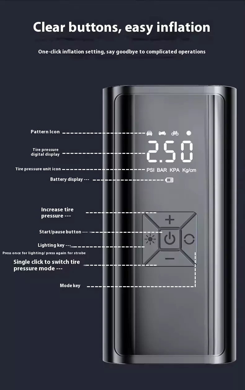 အရင်: ဒစ်ဂျစ်တယ် မျက်နှာပြင် ABS ပစ္စည်းဖြင့် သယ်ဆောင်ရလွယ်ကူသော သယ်ဆောင်ရလွယ်ကူသော ကားလေစုပ်စက်-Electric Air Pump အားသွင်းပါ။