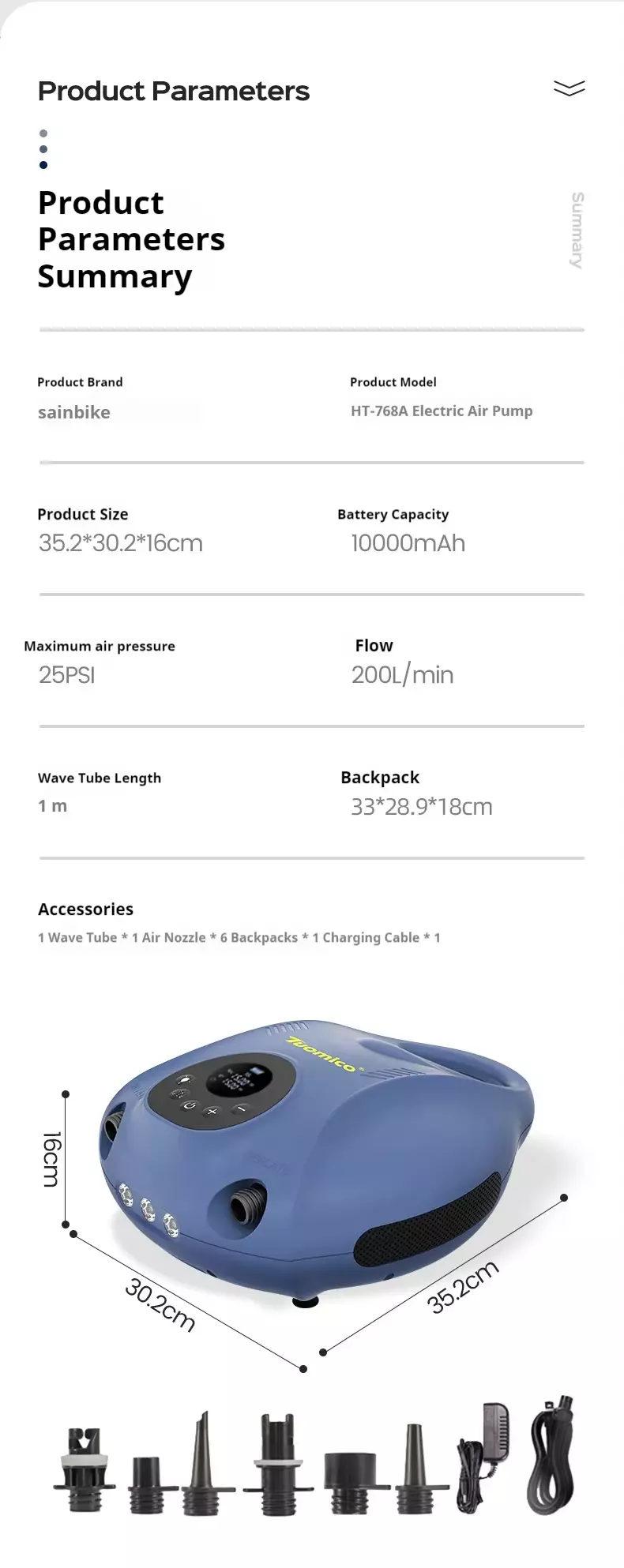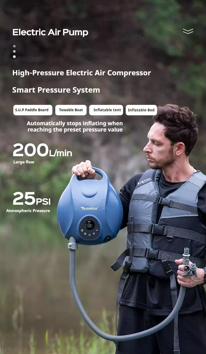 ပြင်ပအိတ်ဆောင်ပလပ်စတစ်လျှပ်စစ်ယာဉ် Air Pump Tent SUP Paddle Board Kayak Wireless High-ဖိအား Pump