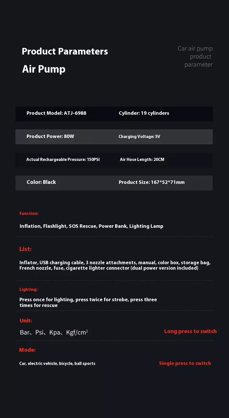 Previous: 80W High Power USB Type-C LED Tire Inflator Pump 150PSI Smart Fill-Stop with Emergency Light