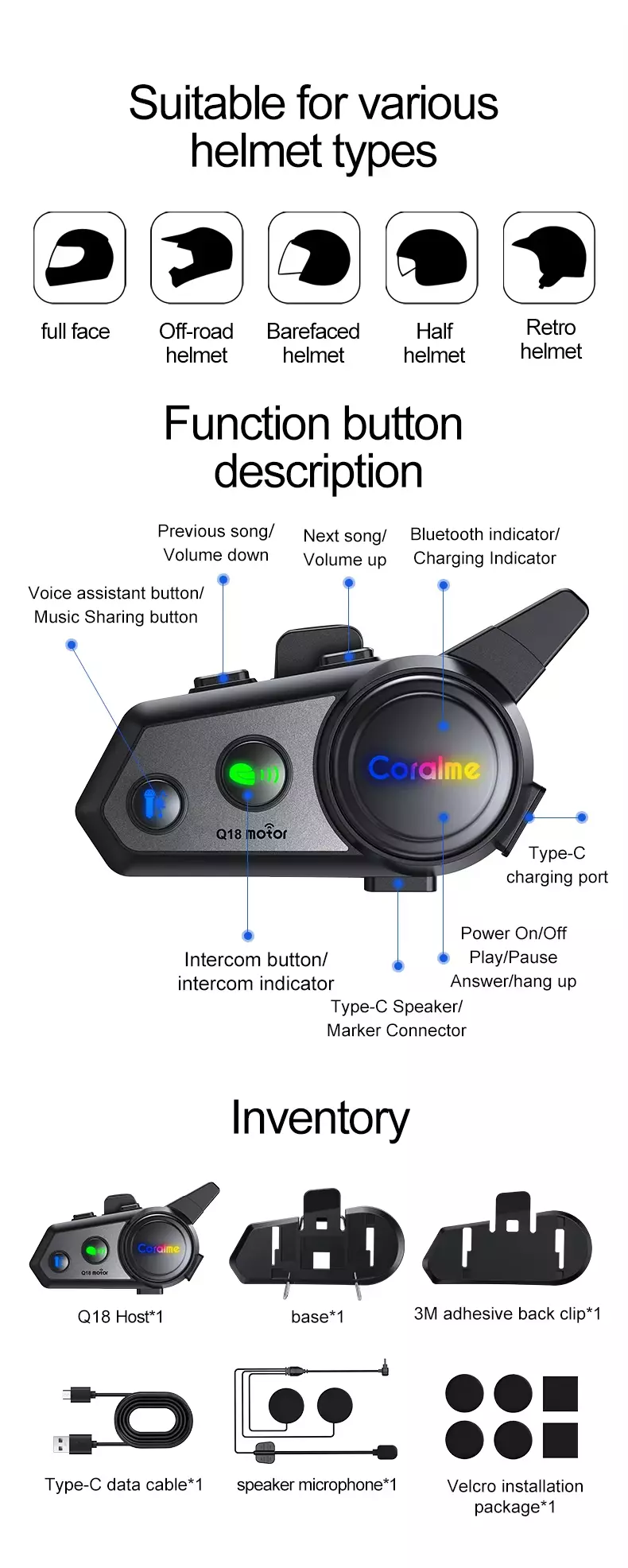 Type:Helmet Headset, bluetooth helmet headset, headphones for helmet, bluetooth motorcycle headset, helmet bluetooth