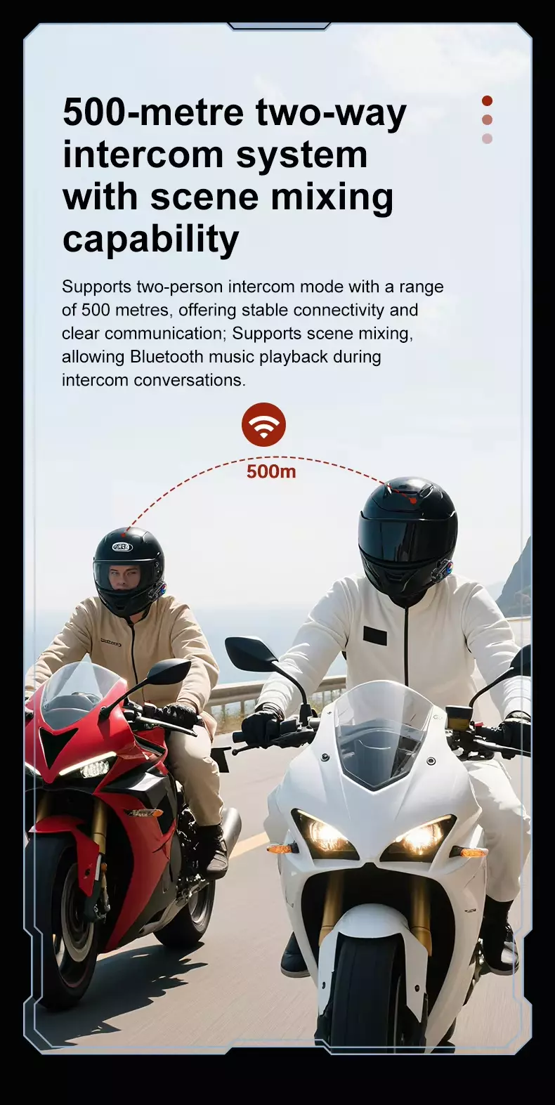 Designed specifically for high-speed, high-wind-noise environments, ENC noise reduction and echo cancellation technology ensure clear and loud calls even at 120 km/h.