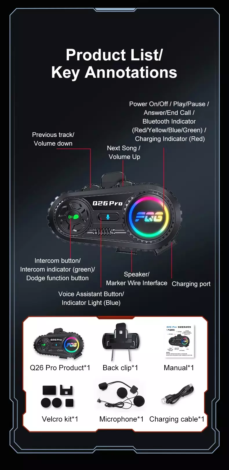 Feature:High-speed dedicated noise reduction with AEC echo, Full-duplex intercom for long-distance communication, Powerful battery life with 1000mAh battery