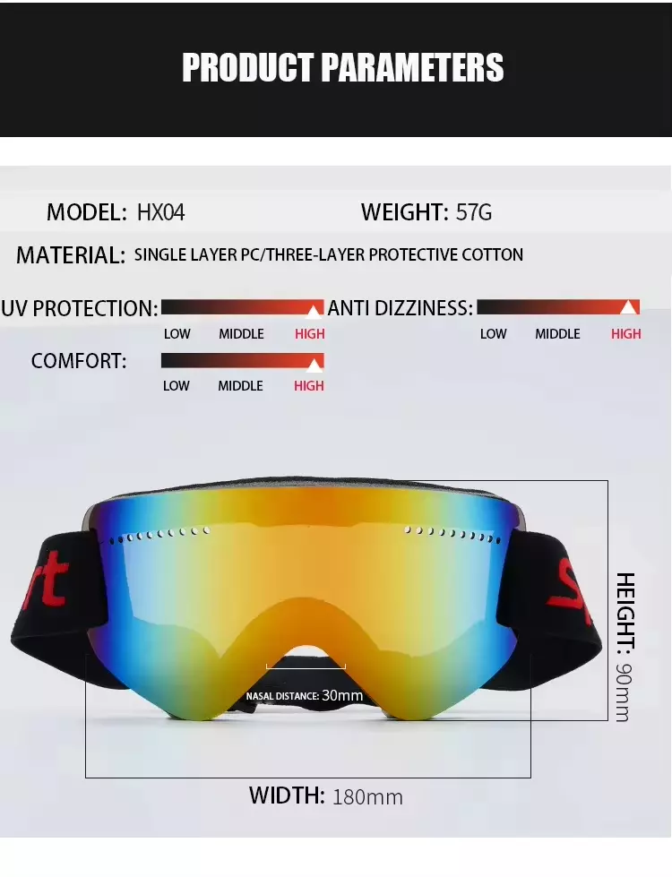 Ski Goggles Anti Fog and Windproof Sand Goggles Men's and Women's Mountaineering Snow Goggles Motorcycle Off-road Goggles
